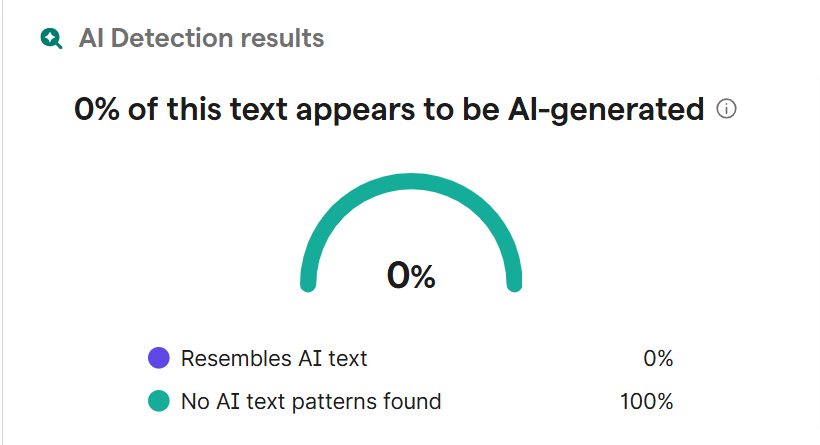 Last but not least, a word of caution. If you are a content creator and passing off AI written content as your own, you can easily be found out! There are many free AI detector tools available today. For example, I ran this post through the free AI detector by Grammarly as an example of how easy it is to check.